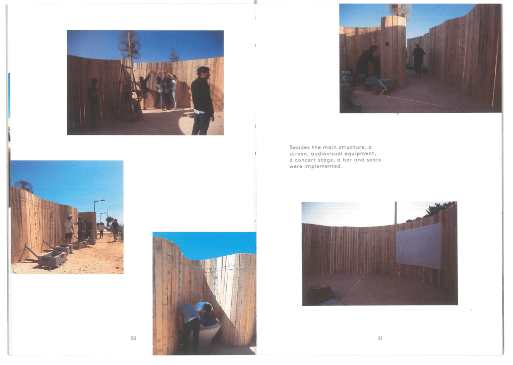 Sagres, situated in the south of Portugal, is a city of seasonal demand, surviving on tourism-related businesses and therefore mostly focused on appealing to those who visit. The little attention paid to the inhabitants gave the motto to the workshop Projecto(r). With two main principles at its core – offering cultural experiences and qualifying public space – participants and inhabitants joined forces for a week. The final result was an open-air cinema (also intended as a public hanging out spot) that is meant to be used all year round to enrich the cultural scene of Sagres and give residents a meeting space to organise events on and off summer season.