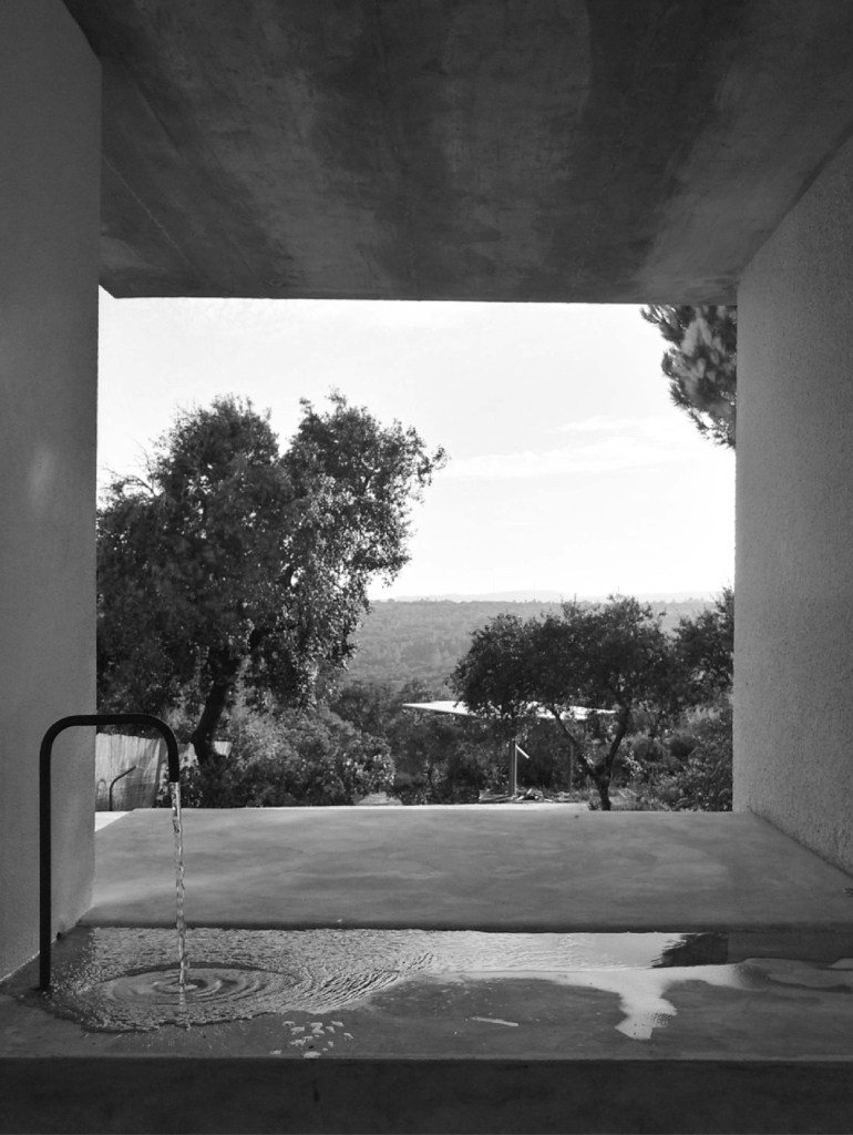 An arrival, a mirror of water, a centerpiece. A (dis)ordered arrangement that characterizes a static. Death or illusion.